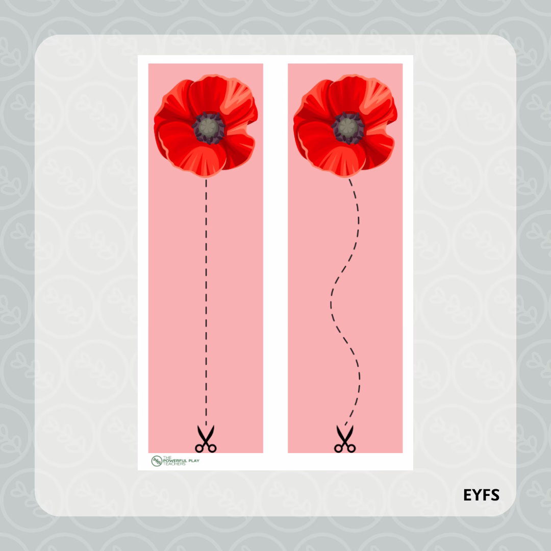 Practise scissor control to cut the patterns neatly along each poppy strip.