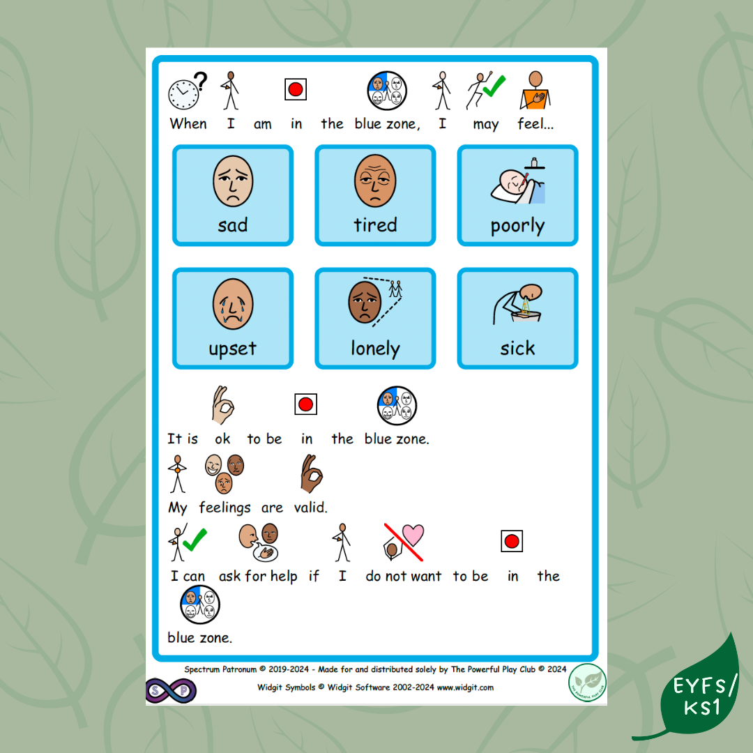 Use this social story to support children understanding their emotions whilst in the blue zone.