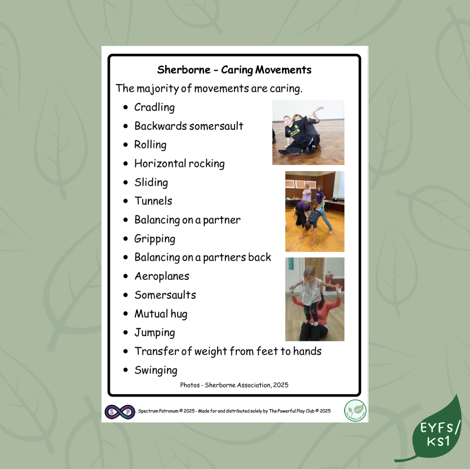 A resource containing photos and suggestions of 'Shared' Movements for Sherborne Developmental Movement Therapy.