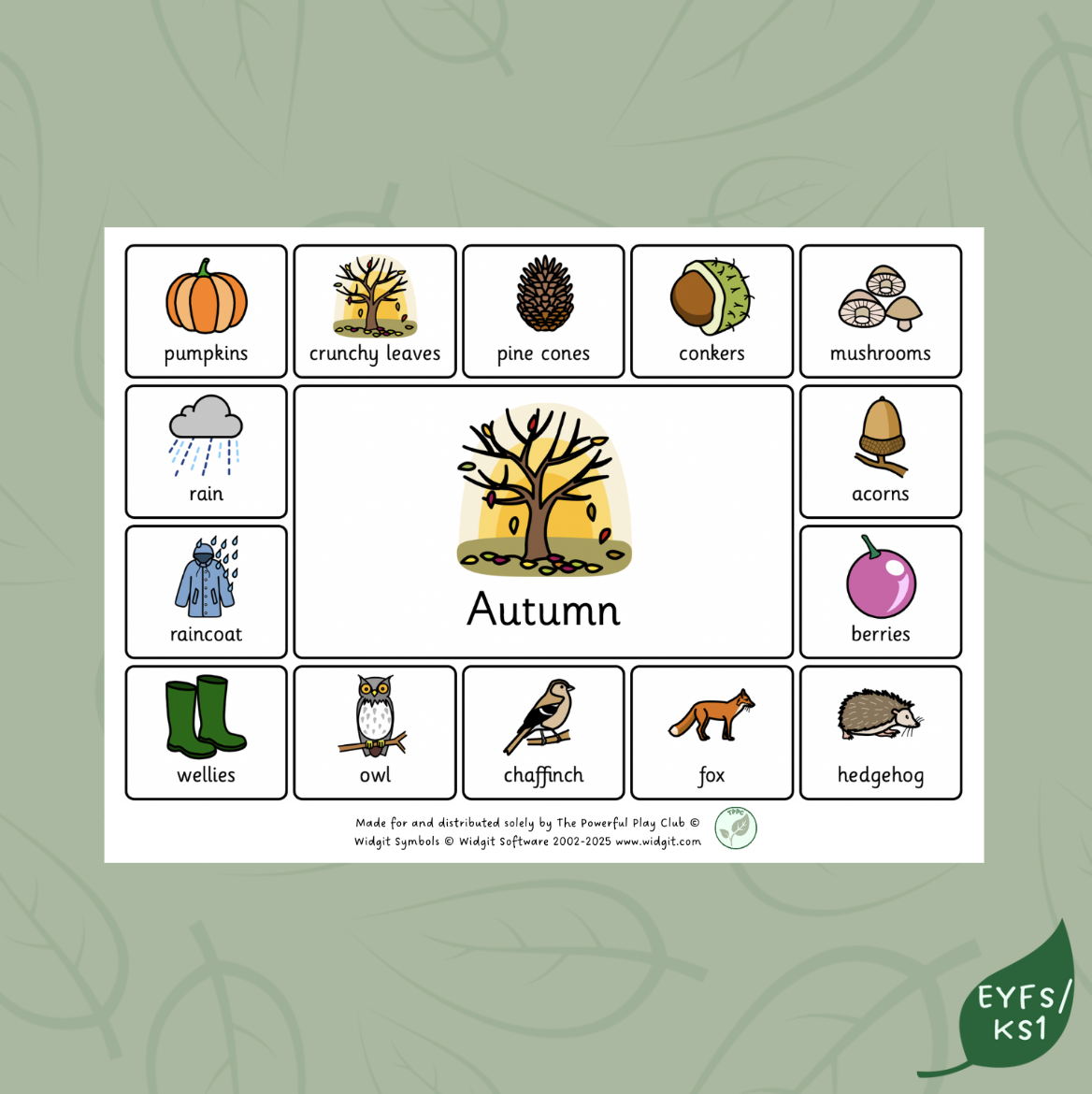 Signs of Autumn resource mat using Widgit symbols.