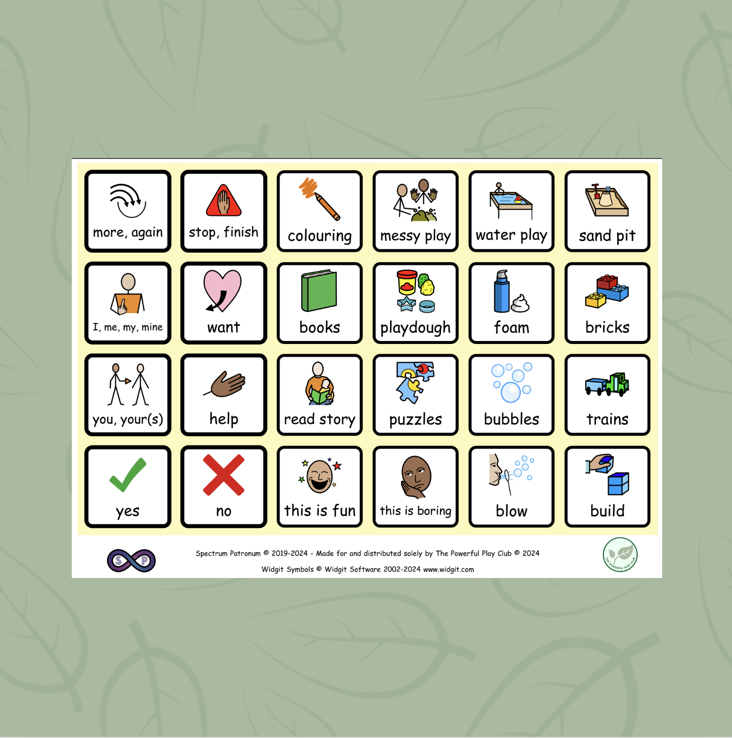PECS choose board. A resource to be used to support learners communicate, make choices and requests. Includes 24 symbols.