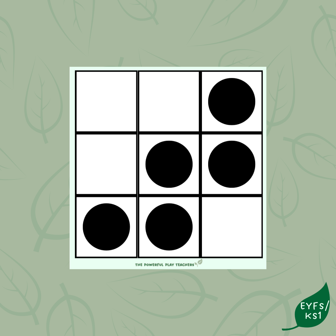 These match the pattern cards are perfect for learning positional language. Recreate the dot patterns using counters or drawing by playing with a partner. One of the partners will describe where to place each dot using positional language such as above, below, middle, between and so on. The other partner will then complete their card and check to see if they followed the instructions accurately.