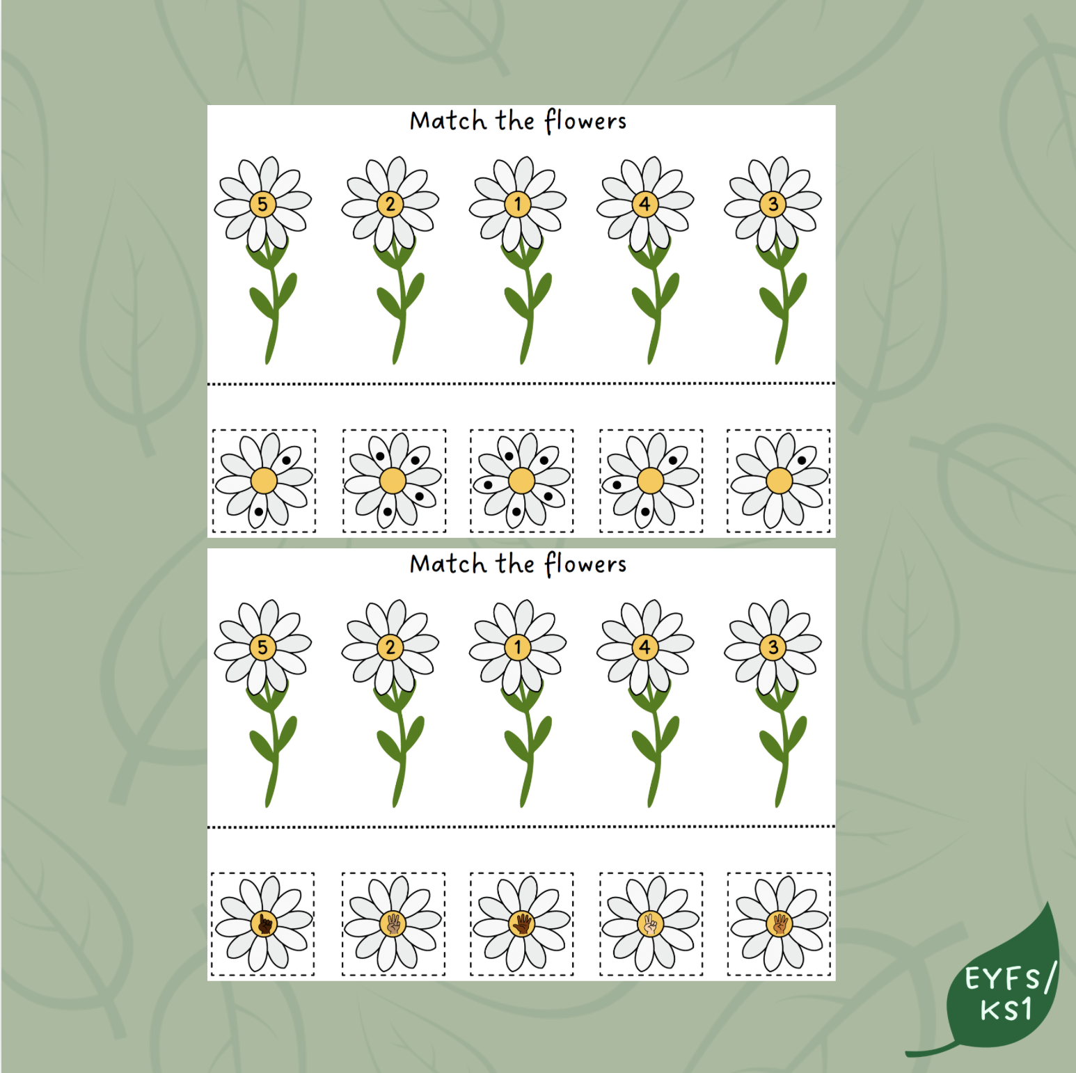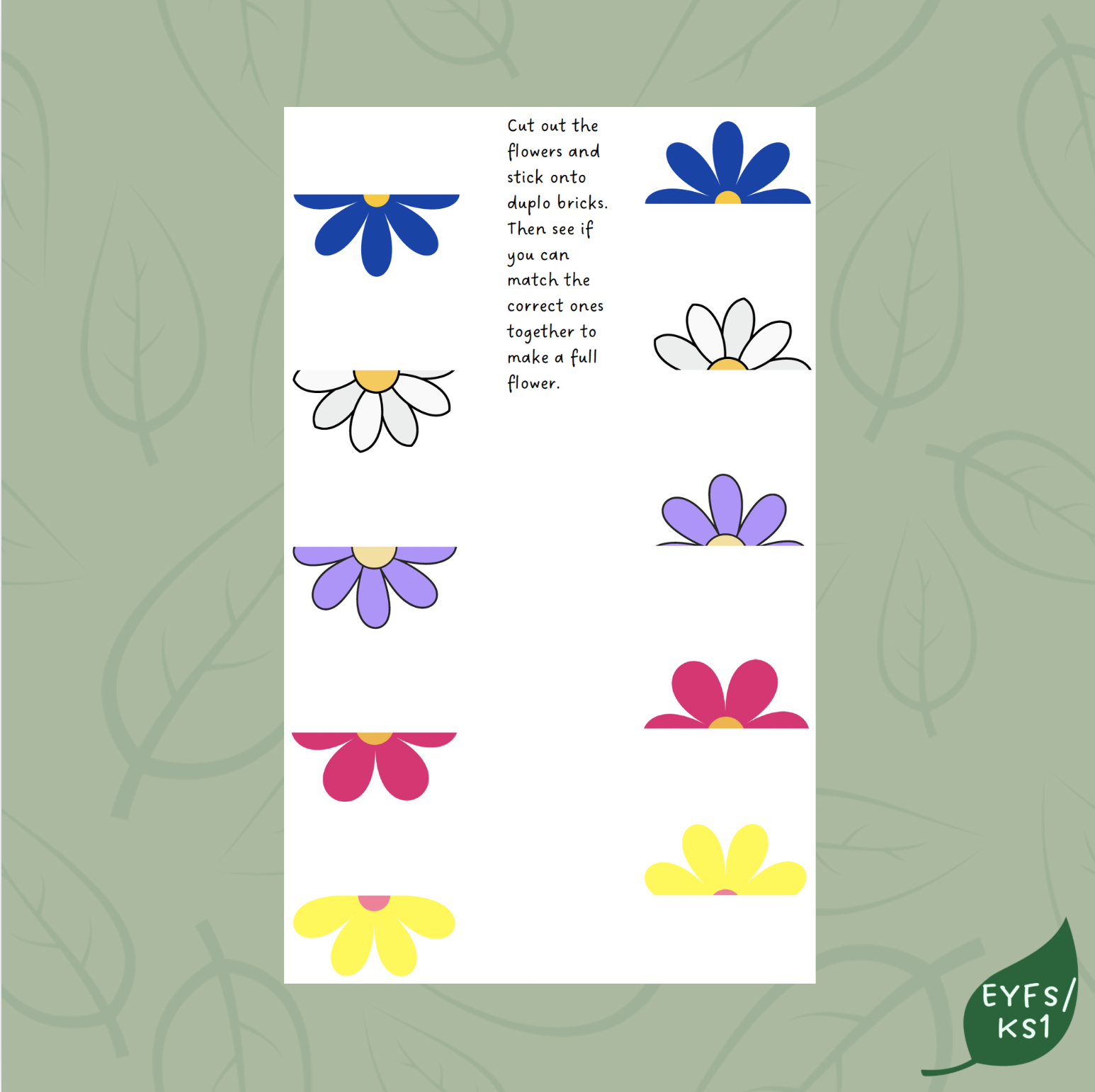 Cut out the blank petals and draw dots to represent each number on the flower. Stick the dots on top of the flower in the centre to create a lift-the-flap subitising craft.