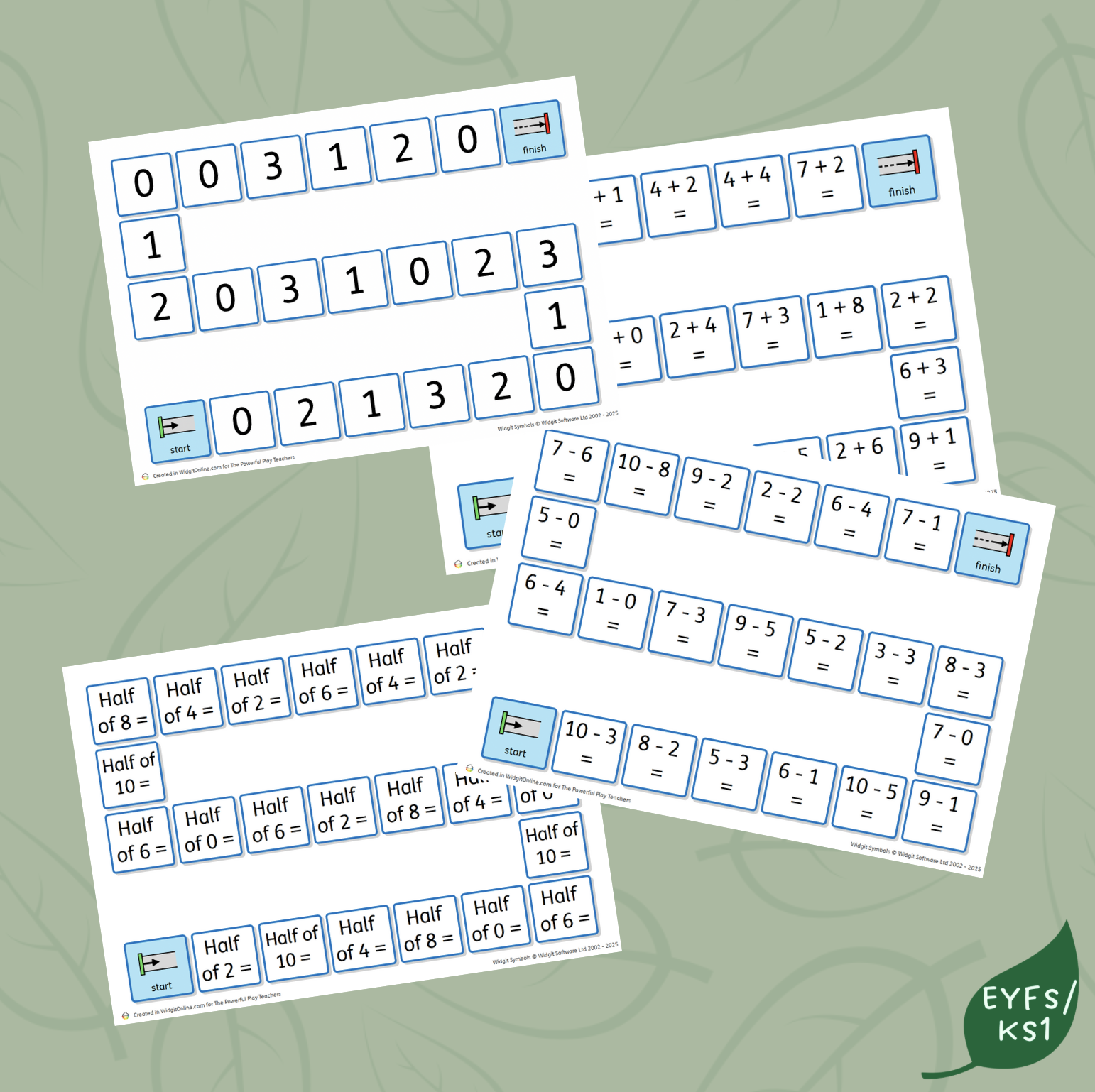 Use these board games to consolidate maths skills. Made using Widgit Software.